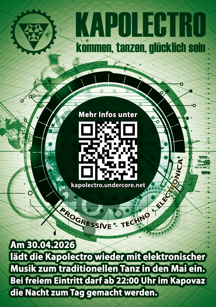 Am 30.04.2026 lädt die 20. Ausgabe der Kapolectro wieder mit elektronischer Musik zum traditionellen Tanz in den Mai ein.